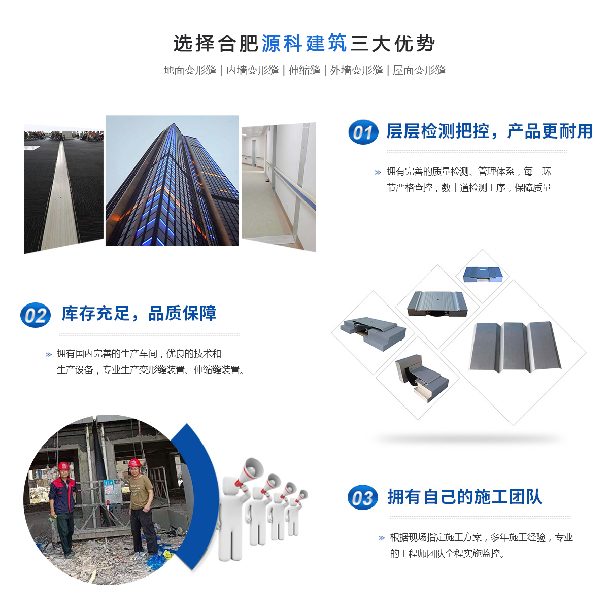 合肥源科建筑科技有限公司位于長三角城市群副中心的合肥,面向國內(nèi)外生產(chǎn)銷售是專業(yè)研發(fā)及產(chǎn)銷各種建筑伸縮縫、地面變形縫、內(nèi)外墻變形縫等裝置。參與了省內(nèi)大型工程(醫(yī)院、學(xué)校、工廠、大型商場超市等)建設(shè),是諸多建設(shè)單位和設(shè)計(jì)學(xué)院長期合作單位,在建筑變形縫伸縮縫行業(yè)樹立了自己的專業(yè)形象。本公司根據(jù)建筑業(yè)的發(fā)展和用戶的實(shí)際需要,深入研制出目前國內(nèi)新型的建筑伸縮縫裝置。按照使用部位分為四個類別:樓地面變形縫;內(nèi)墻、頂棚吊頂變形縫;外墻變形縫;屋面變形縫;按照變形...